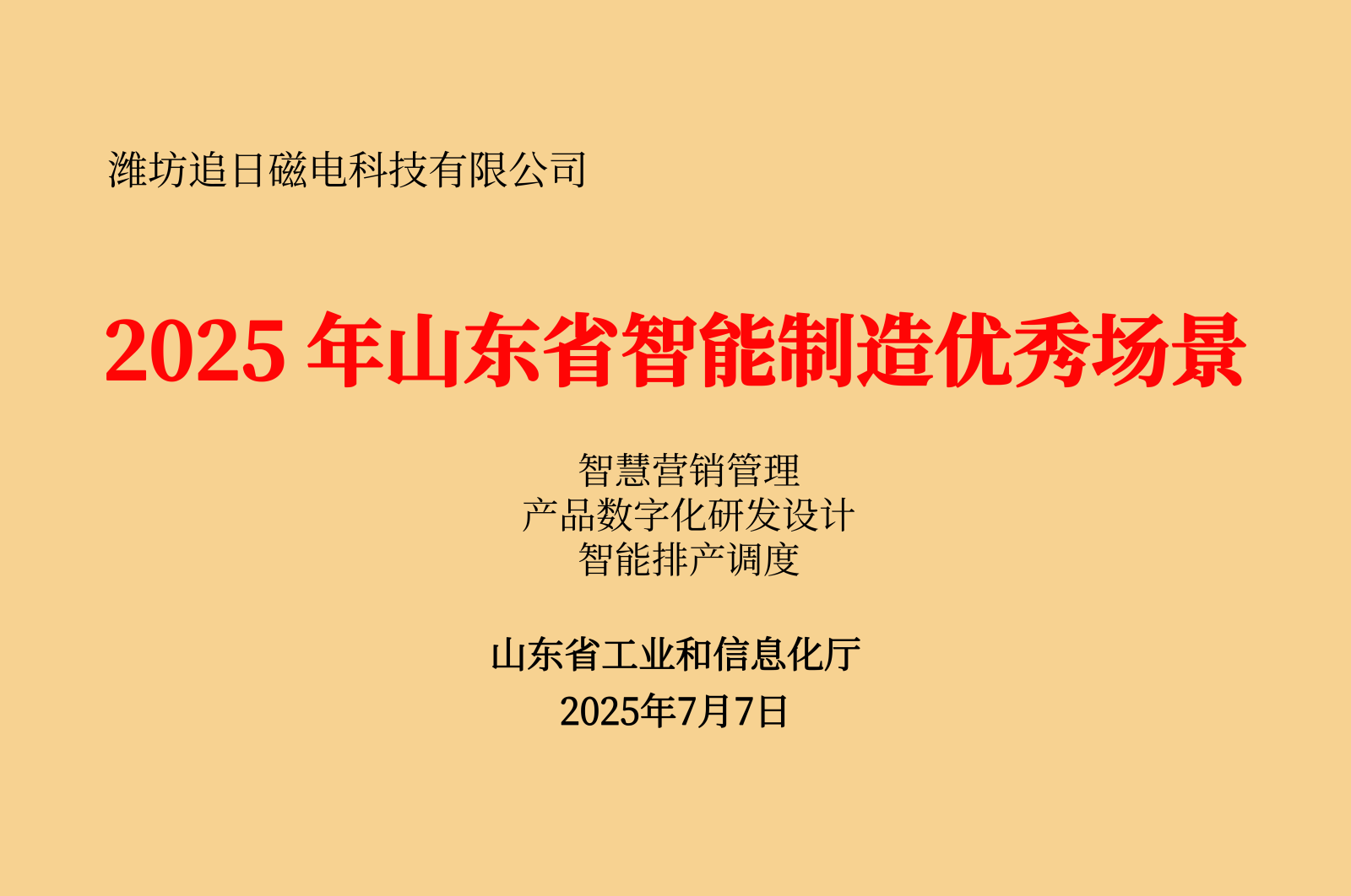 2025年山东省智能制造优秀场景