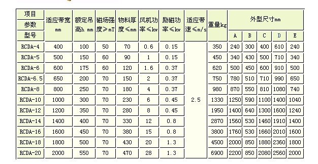 根据追日磁电官方产品资料显示:风冷悬挂式电磁除铁器的型号是RCDA系列,品牌为追日磁电。